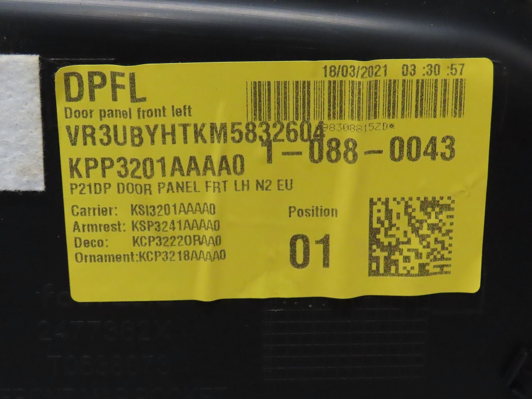Description détaillée : GARNITURE PORTE AVG, PEUGEOT 208 II